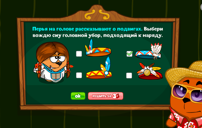 Перья на голове рассказывают о подвигах. Выбери вождю сиу головной убор, подходящий к наряду.