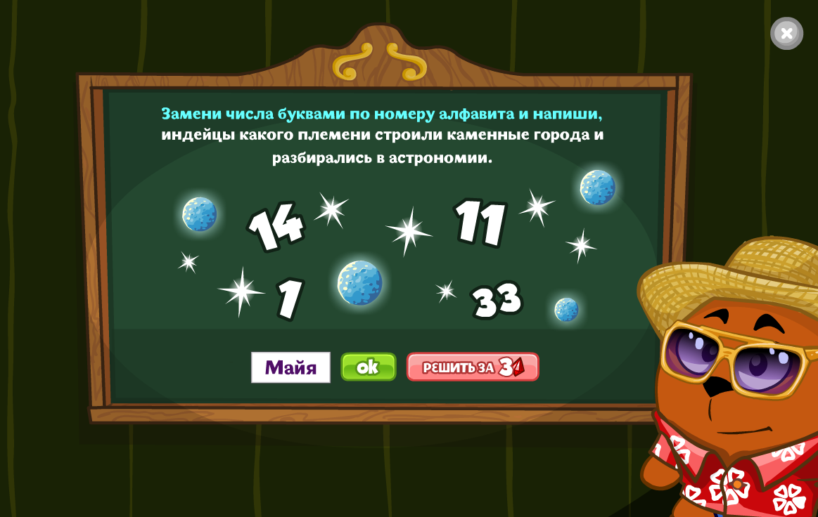 Доброго времени суток! Сегодня вашему вниманию мы предлагаем ответы на урок загадочных индейцев, который проводит в Школе Магов Пляжник.