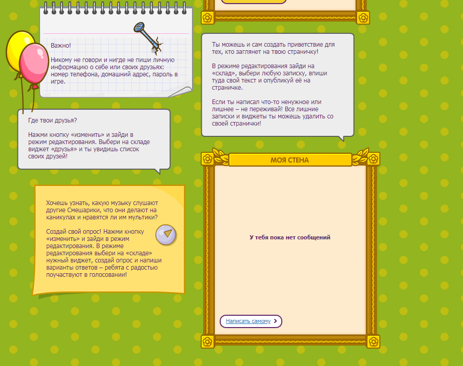 Как вы знаете, в домике Лосяша в Ромашковой долине можно получить компьютер, если правильно ответить на 3 вопроса. Если сейчас навести курсор мышки на компьютер, то он изменит свою форму, намекая на то, что на компьютер можно нажать. Однако после нажатия ничего не происходит. Раньше после нажатия мы попадали на личную страницу своего Смешарика, но эту функцию убрали.
