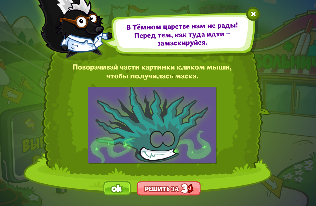 Поворачивай части картинки кликом мыши, чтобы получилась маска.