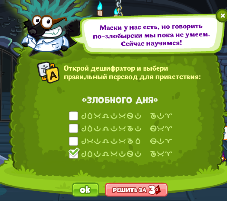 Открой дешифратор и выбери правильный перевод для приветствия:
