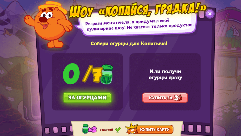 Встречаем Копатыча и помогаем ему собрать огурцы. Огурцы находятся в Клубном квартале и обновляются каждые 10 минут.