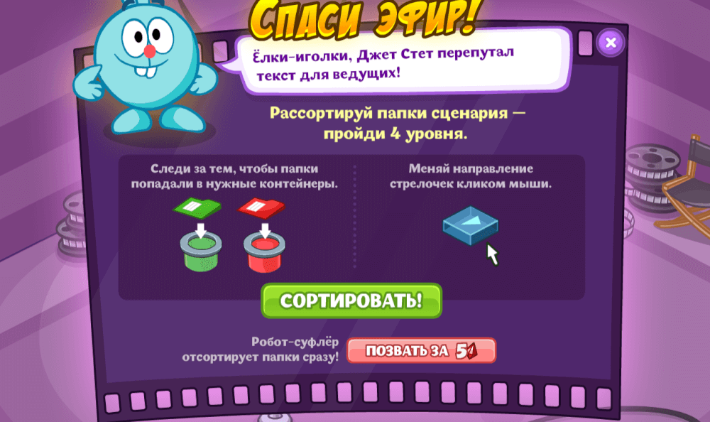 Помогаем Совунье снять шоу «Ревизунья». Здесь задание на время.
