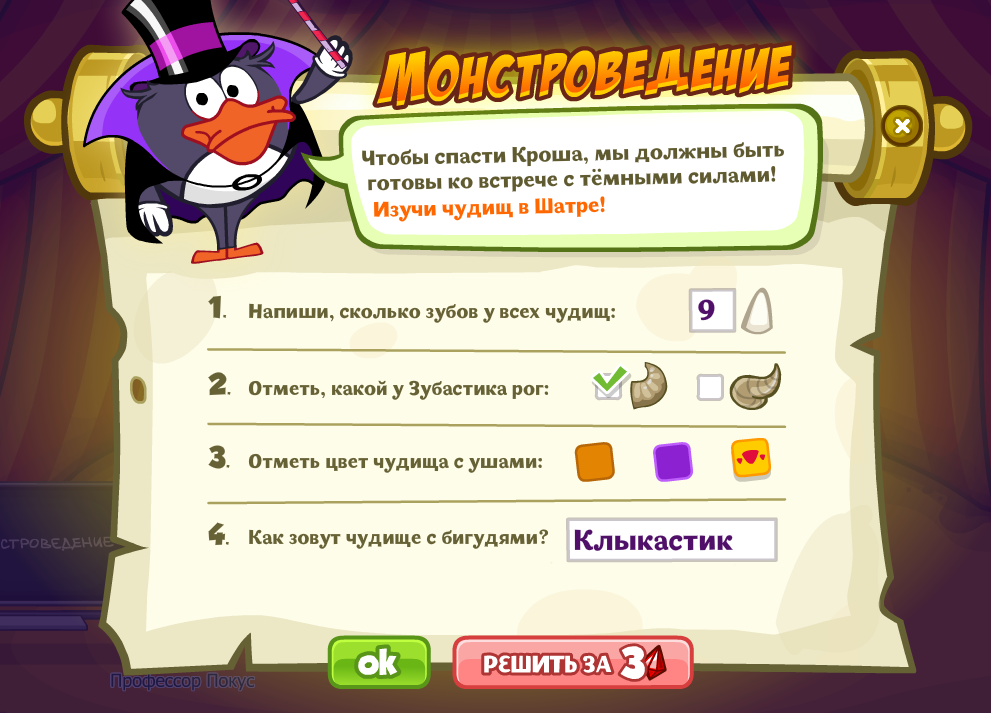 Чтобы спасти Кроша, мы должны быт ьготовы ко встрече с тёмными силами! Изучи чудищ в Шатре!