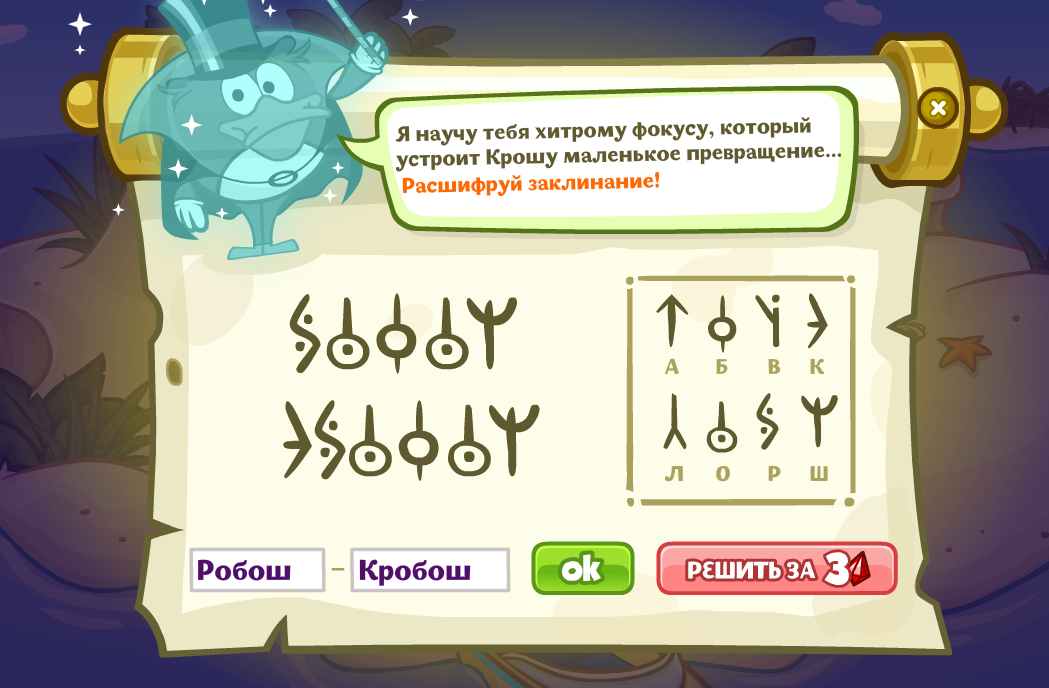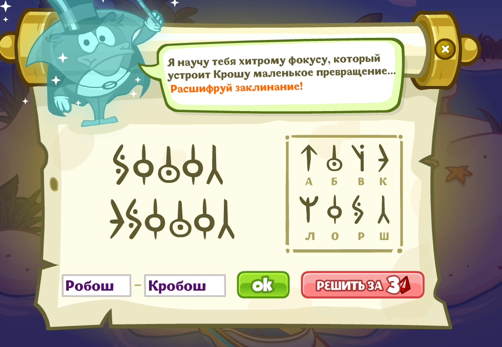 Я научу тебя хитрому фокусу, который устроить Крошу маленькое превращение… Расшифруй заклинание!