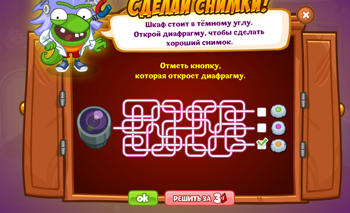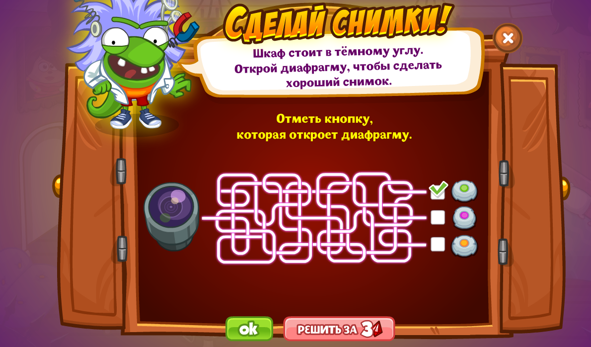 Отметь кнопку, которая откроет диафрагму.