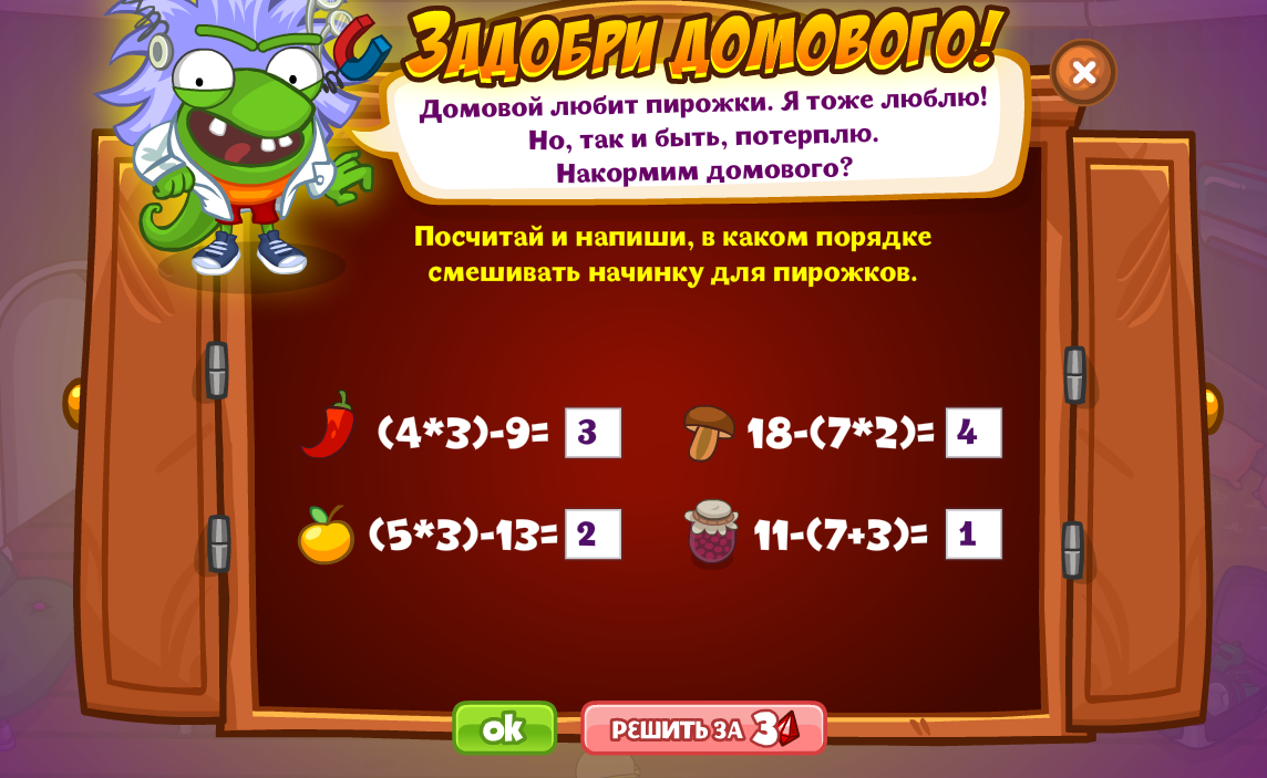 Посчитай и напиши, в каком порядке смешивать начинку для пирожков.