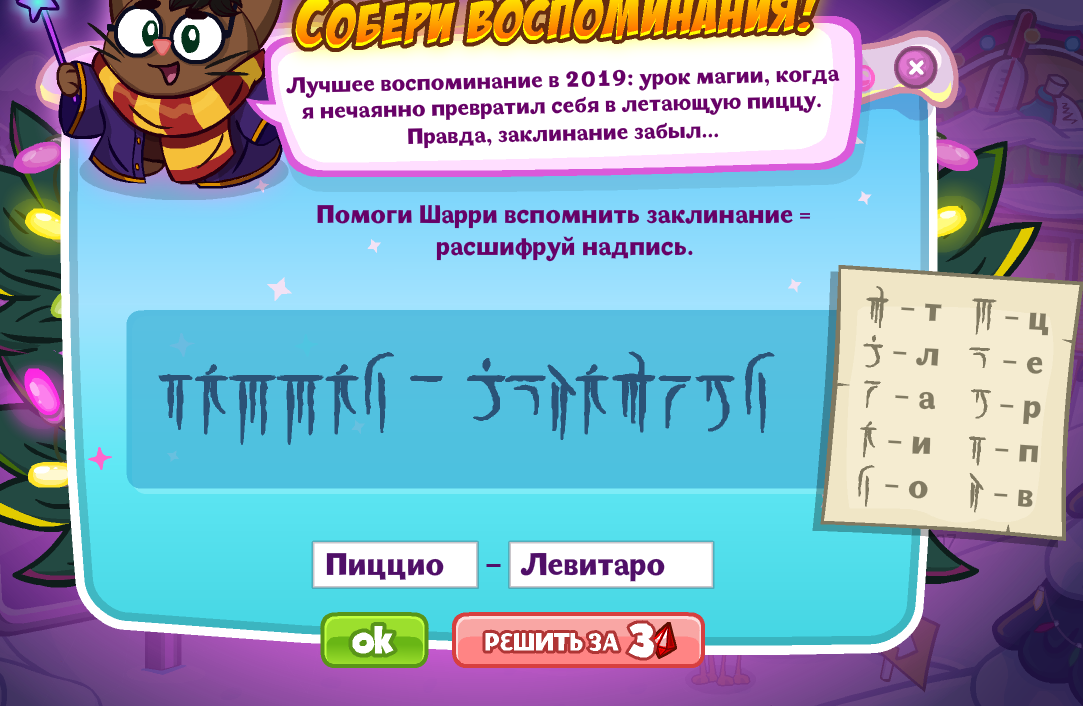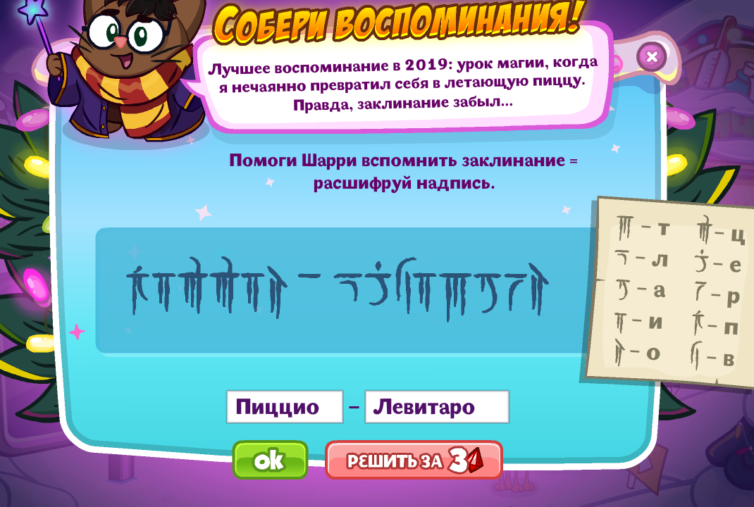 Помоги Шарри вспомнить заклинание = расшифруй надпись.