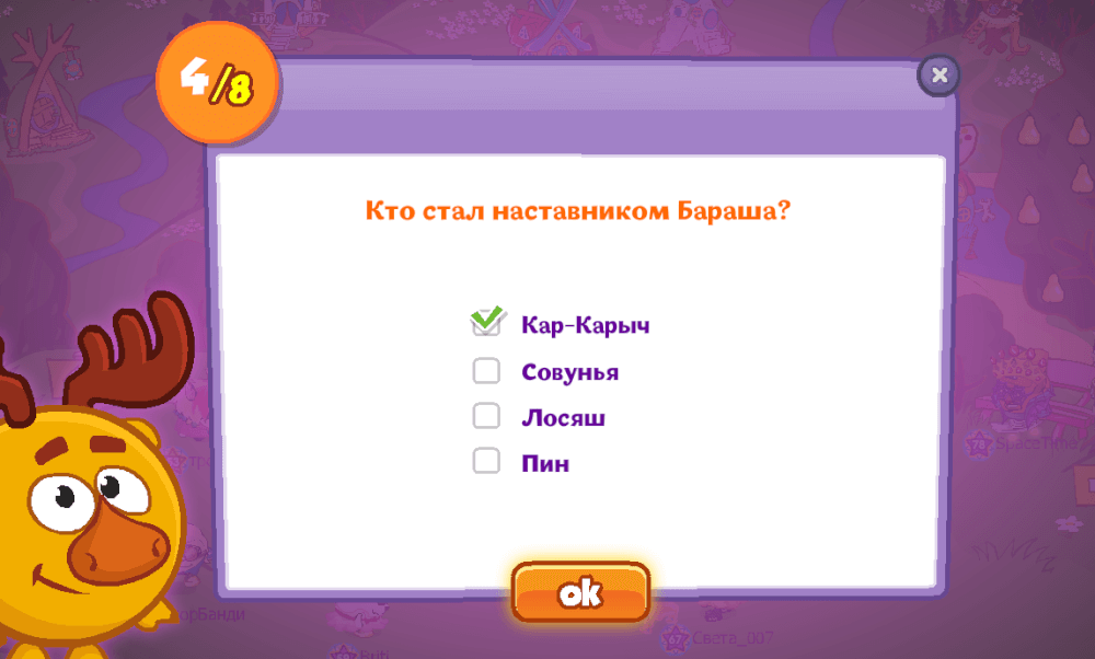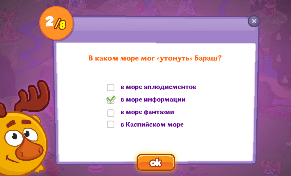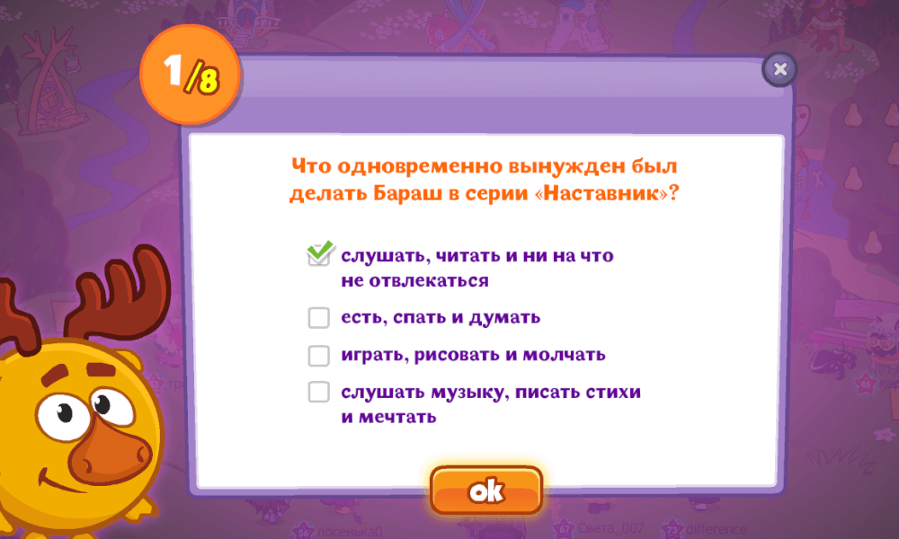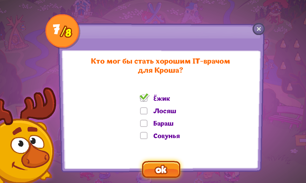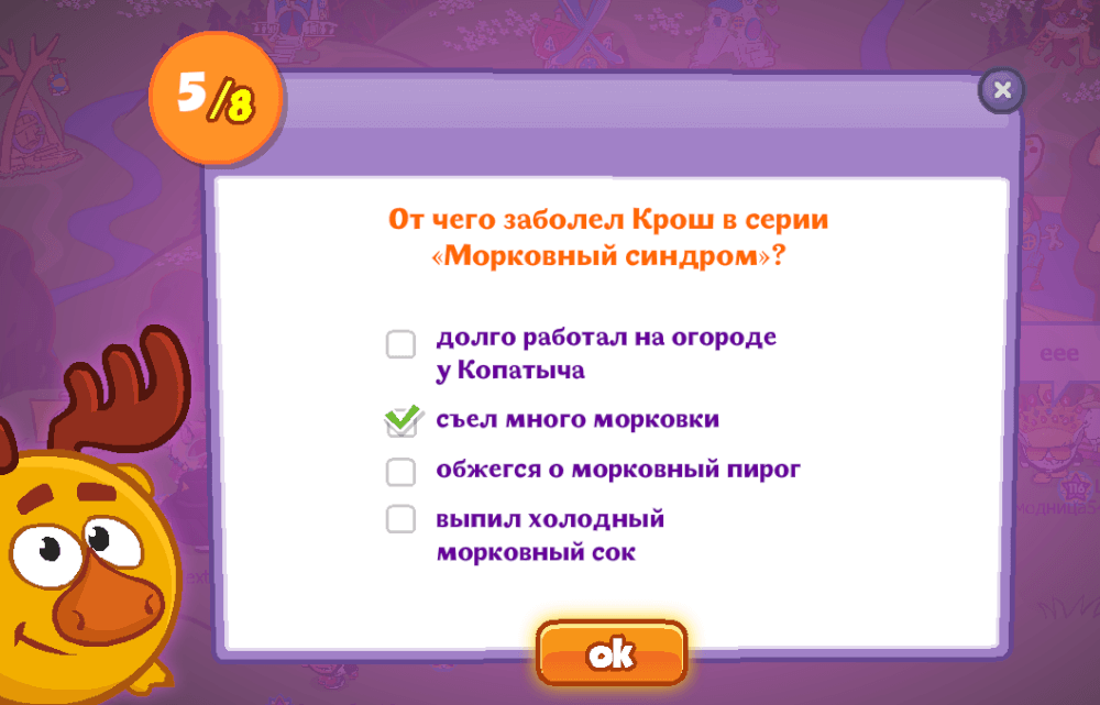 Чтобы Крош не болел, Ёжик придумал для него игру. Что Крош должен делать в игре?