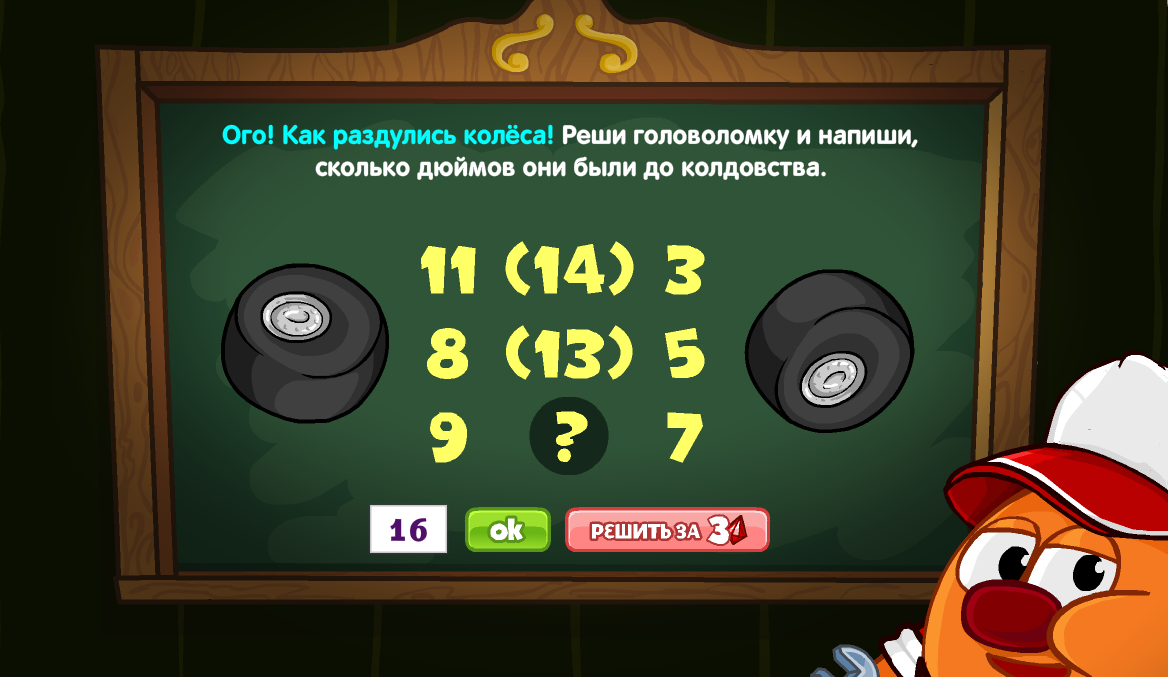 Ого! Как раздулись колёса! Реши головоломку и напиши, сколько дюймов они были до колдовства