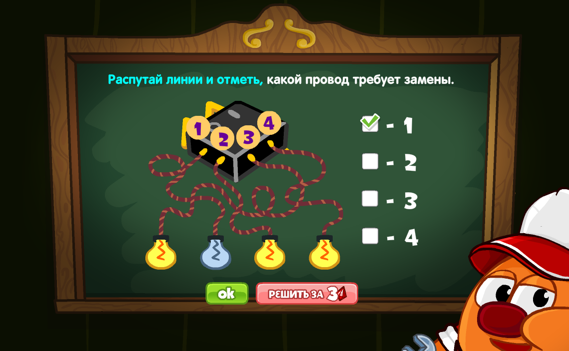Распутай линии и отметь, какой провод требует замены.