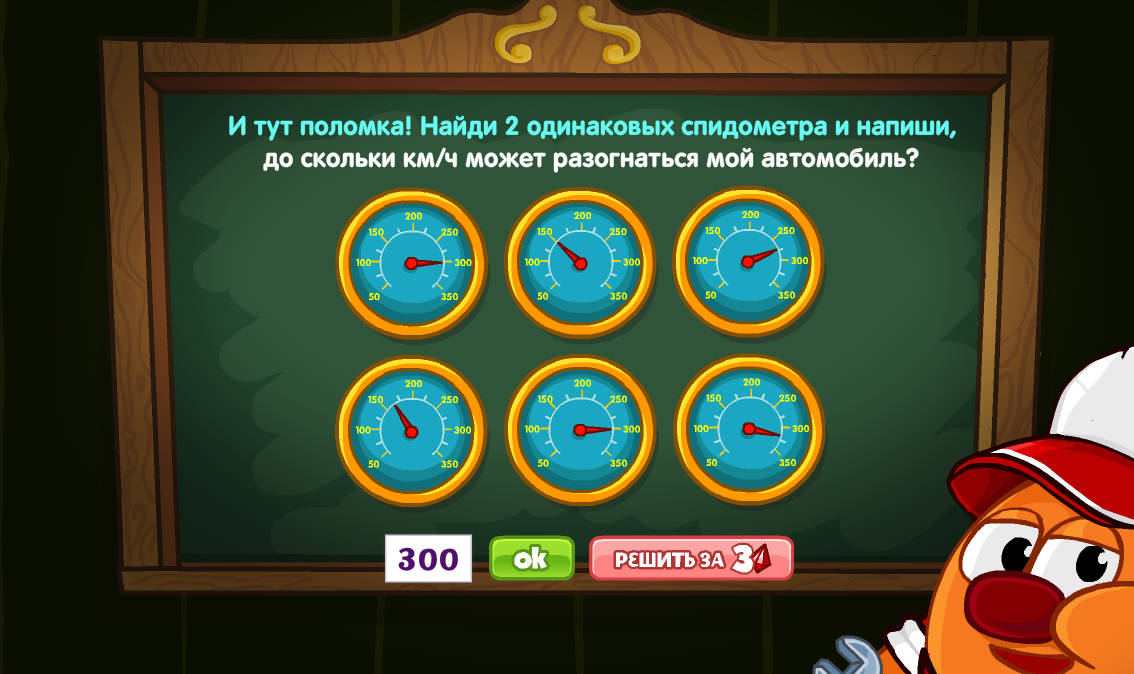 И тут поломка! Найди 2 одинаковых спидометра и напиши, до скольки км/ч может разогнаться мой автомобиль