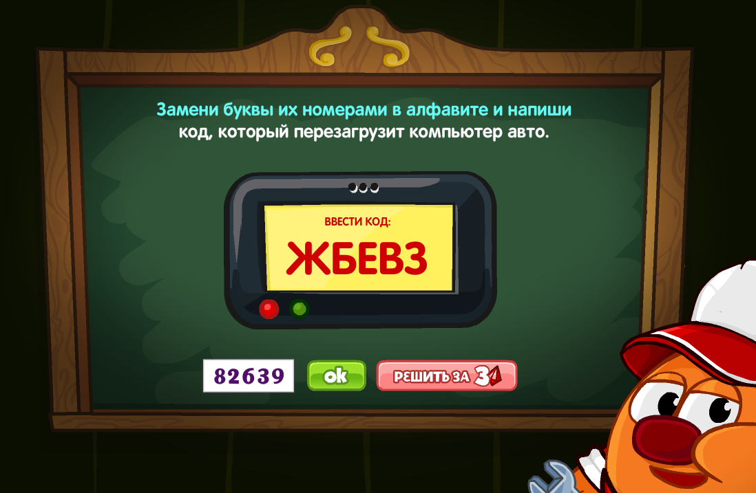 Замени буквы их номерами в алфавите и напиши код, который перезагрузит компьютер авто.