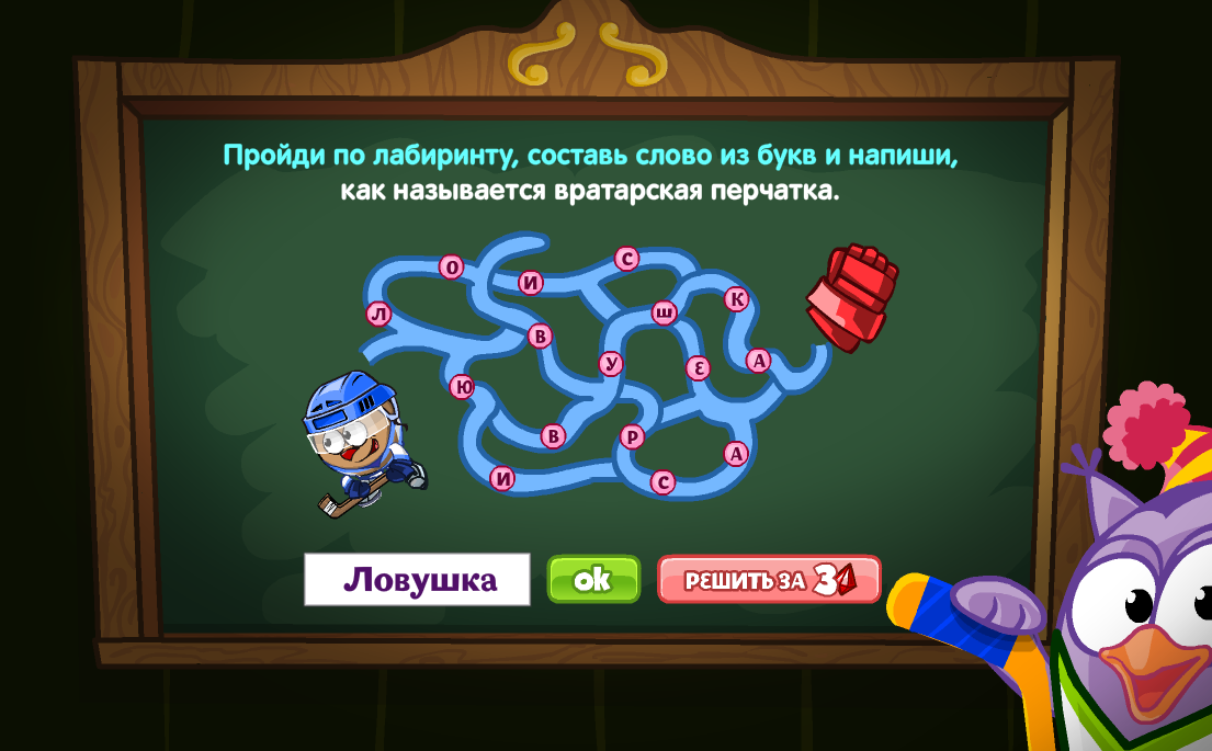 Пройди по лабиринту, составь слово из букв и напиши, как называется вратарская перчатка