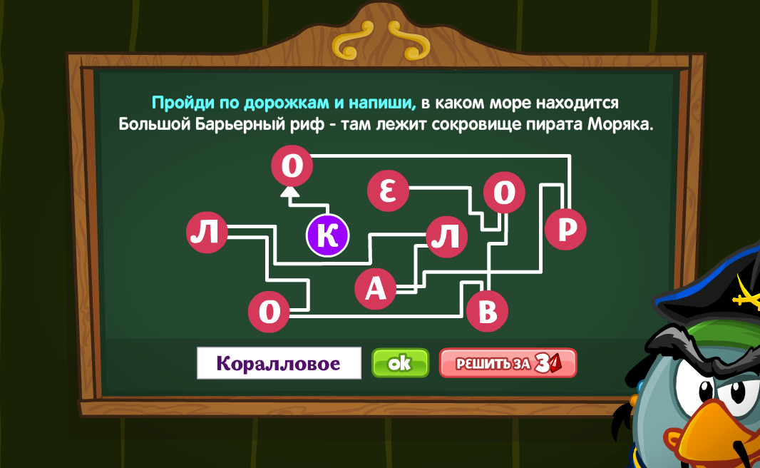 Пройди по дорожкам и напиши, в каком море находится Большой Барьерный риф — там лежит сокровище пирата Моряка.