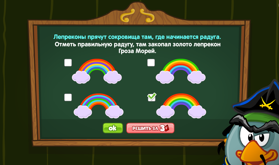 Лепреконы прячут сокровища там, где начинается радуга. Отметь правильную радугу, там закопал золото лепрекон Гроза Морей.