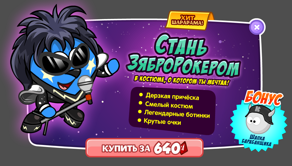 Повтор акции «Хит Шарарама» под названием «Стань ЗяброРокером». Его стоимость составляет 640 румбиков.