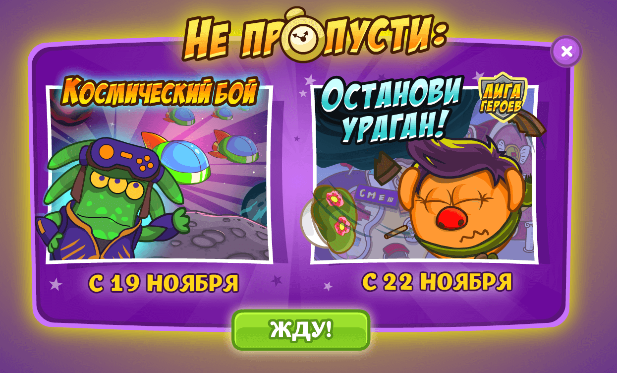 Так я не поняла, ведь сегодня появилось Ураган Снесёт Всё! Да и ещё 22 Ноября добавят Останови Ураган! И снова Лига Героев, они совсем?