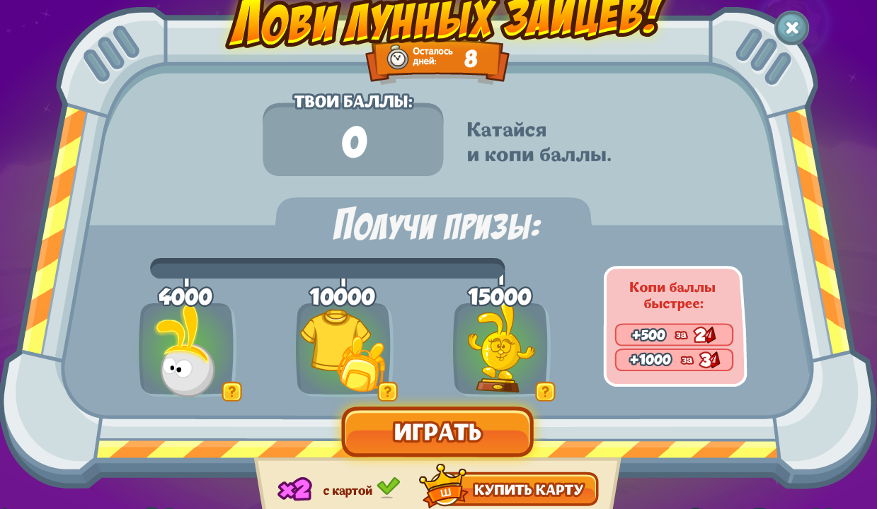 Турнир по 2 играм, как обычно, только одна из них доступна бескартным Смешарикам.
