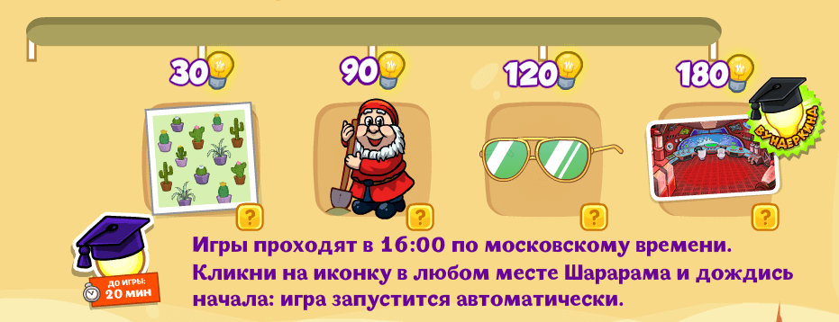 Повтор соревнований. Есть 2 мини-игры, одна для всех, другая только для обладателей ШарарамКарты.