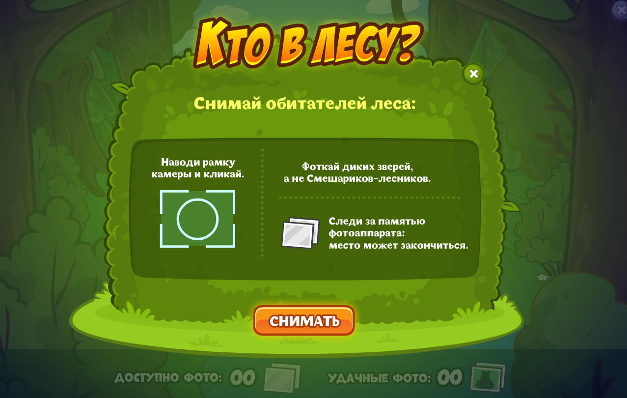 Во второй игре вы должны вовремя фотографировать животных, которые выглядывают из разных кустов или пробегают по полянке