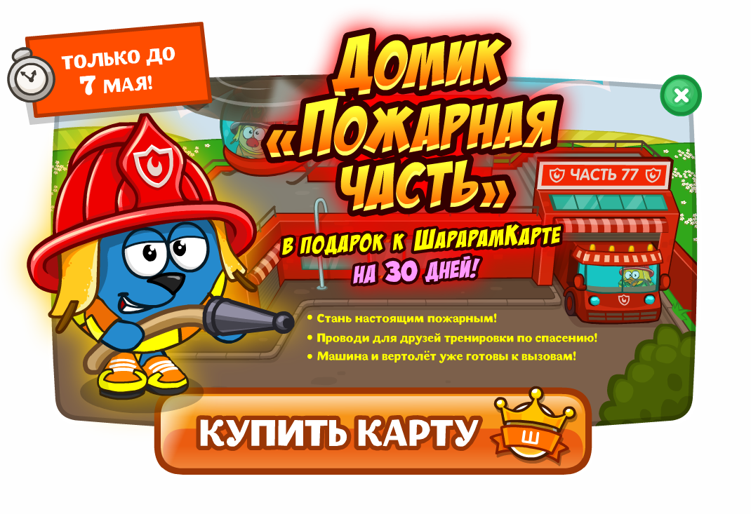 Купи ШарарамКарту на 30 дней до 7 мая и получи в подарок домик «Пожарная часть».