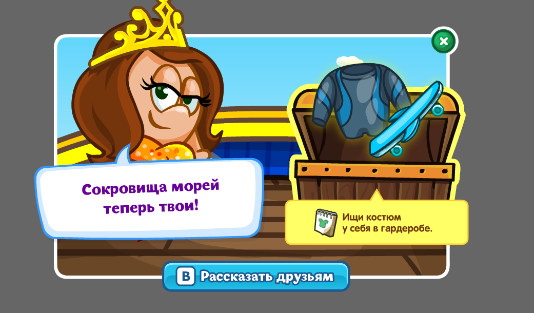 Получить сокровища из пиратского сундука, набрав определенное количество очков в играх в трюме