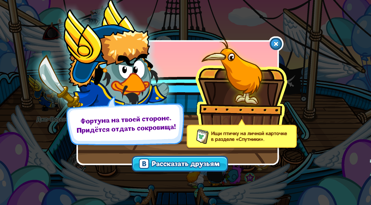 За прохождение игр в трюме вы получите спутника «птичку Киви»