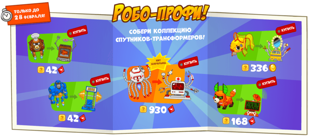 Начало распродажи «Робо-профи!» Собери коллекцию спутников-трансформеров до 28 февраля.