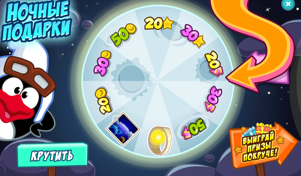 Ночные подарки. Крутить колесо можно каждые 2 часа.