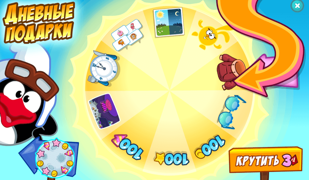 Дневные подарки. Крутить колесо можно за 3 румбика.