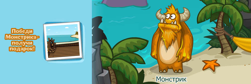 Прогони Монстрика в Пиратской бухте и получи в подарок фон «Капитанский».