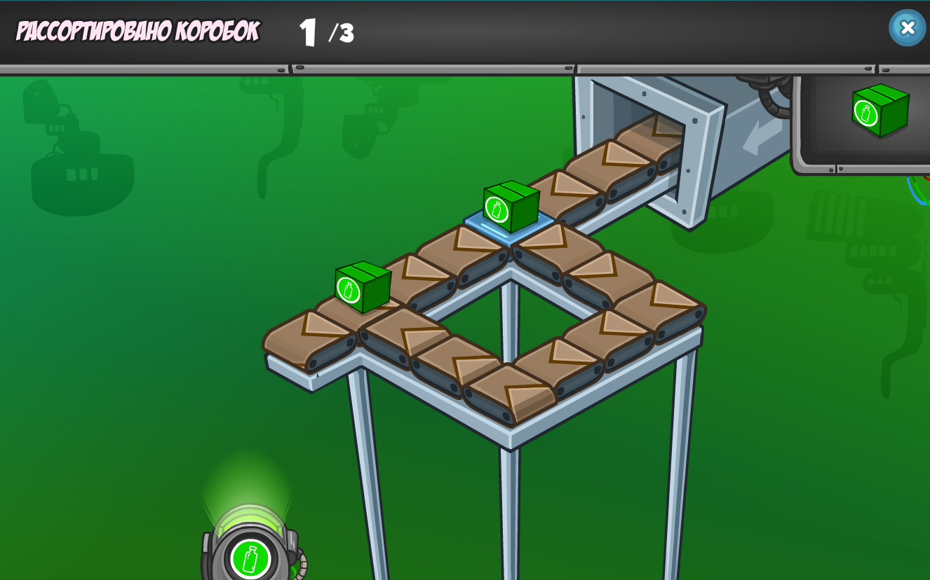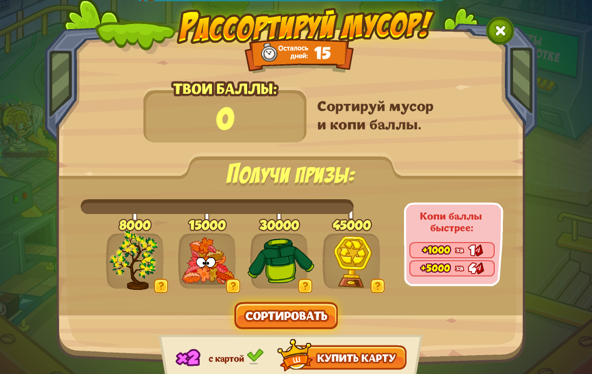В локации «Заводик» вы можете принять участие в событии «Рассортируй мусор». Набирайте баллы в игре из локации «Страна роботов» и обменивайте их на призы.