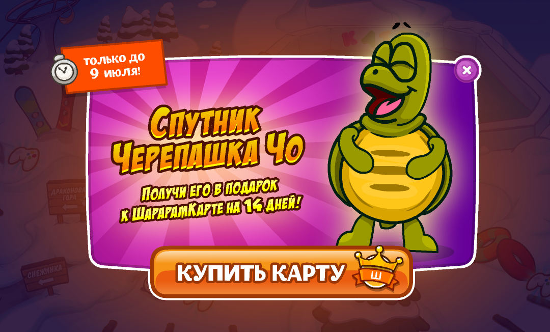 Спутник «Черепашка Чо» в подарок к ШарарамКарте на 14 дней до 9 июля.