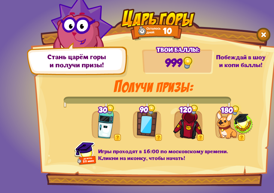 Царь горы теперь Всегда через 9 дней опять новые призы
