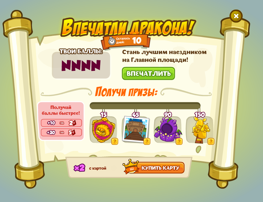 Я, грозный дракон, люблю состязания! Повелеваю устроить в Шарараме турнир по скачкам. Будет весело! А рыцарям и прекрасным дамам, которые меня удивят, я вручу достойную награду!