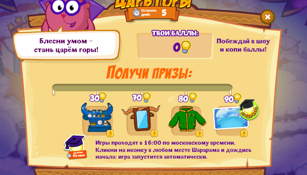 по какому принципу даются баллы в игре доступной смешарикам без Ш карты?