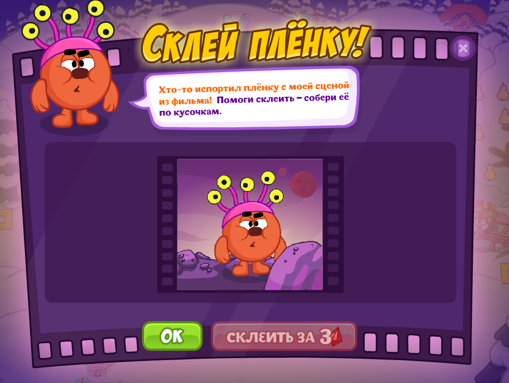 Хто-то испортил плёнку с моей сценой из фильам! Помоги склеить — собери её по кусочкам.