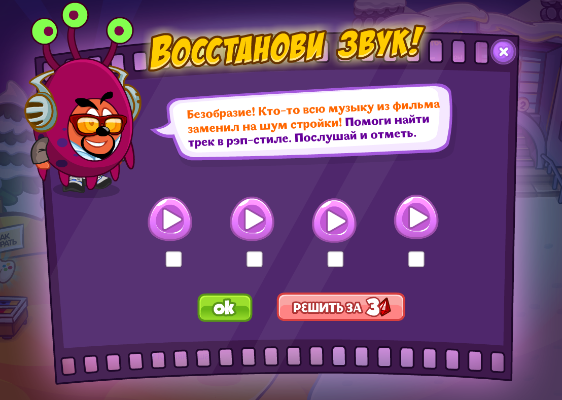 Безобразие! Кто-то всю музыку из фильма заменил на шум стройки! Помоги найти трек в рэп-стиелп. Послушай и отметь.