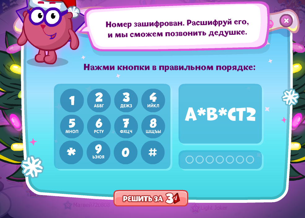 Номер зашифрован. Расшифруй его, и мы сможем позвонить дедушке.