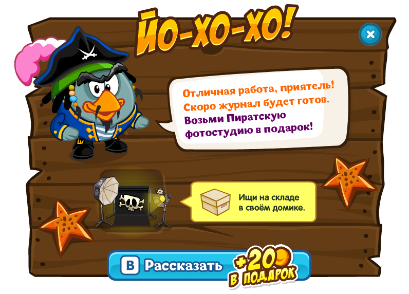 В Шарарам приплыли пираты из разных стран! Это я их позвал! Я решил сделать пиратский журнал. Но мне нужен фотограф… Сфотографируй всех пиратов, и я подарю тебе фотостудию в домик.