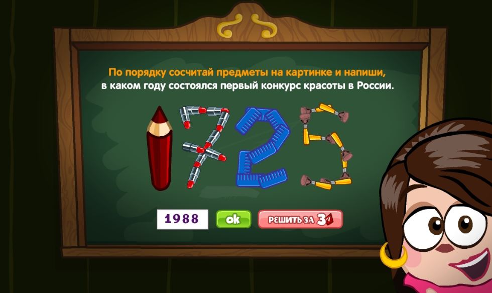 По порядку сосчитай предметы на картинке и напиши, в каком году состоялся первый конкурс красоты в России.