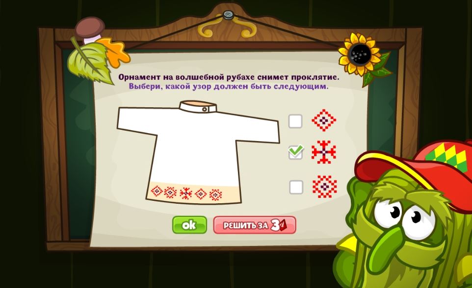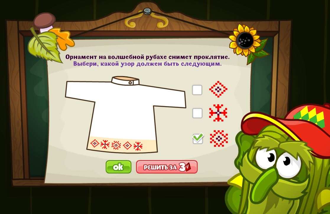 Орнамент на волшебной рубахе снимет проклятие. Выбери, какой узор должен быть следующим.