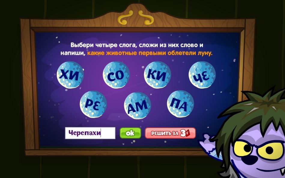 Выбери четыре слога, сложи из них слово и напиши, какие животные первыми облетели луну.