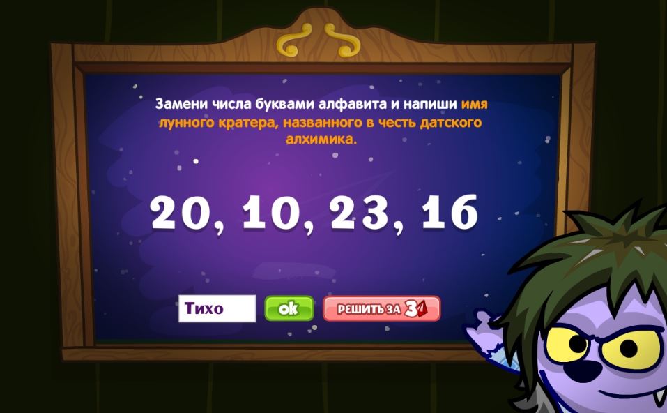 Замени числа буквами и напиши имя лунного кратера, названого в честь датского алхимика.