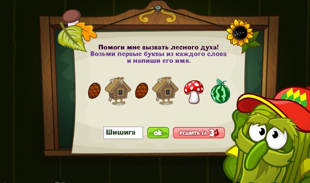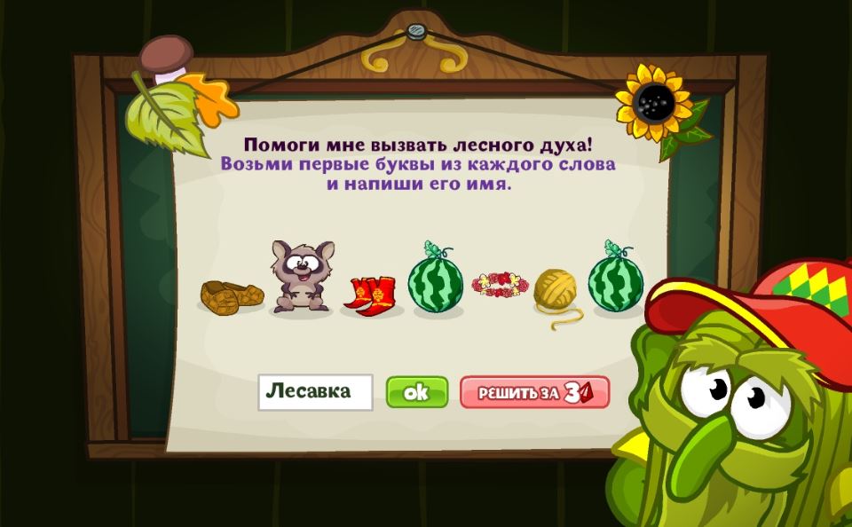 Помоги мне вызвать Лесного духа! Возьми первые буквы из каждого слова и напиши его имя.