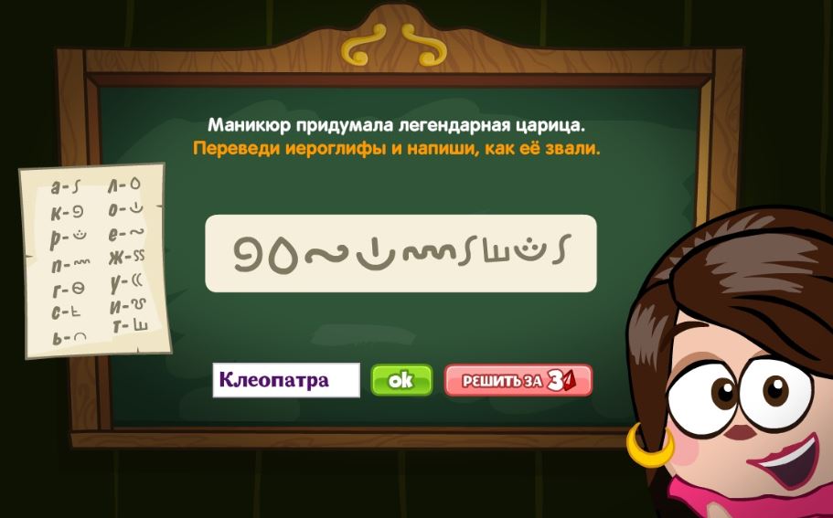 Маникюр придумала легендарная царица. Переведи иероглифы и напиши, как её звали.