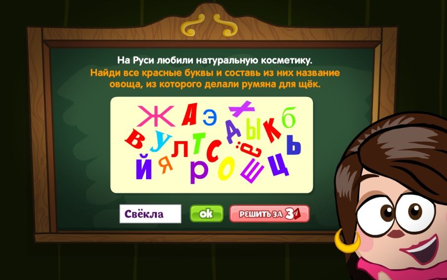 На Руси любили натуральную косметику. Найди все красные буквы и составь из них название овоща, из которого делали румянцы для щёк.