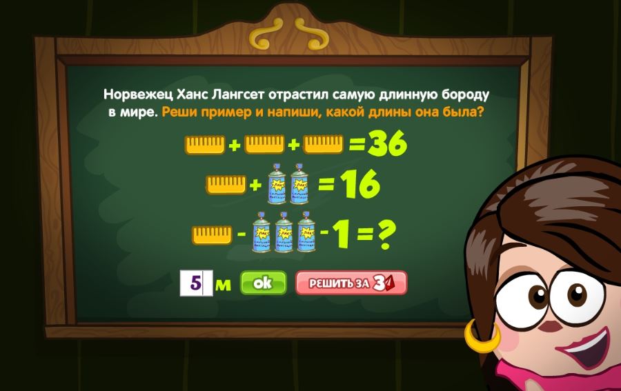 Норвежец Ханс Лангсет отрастил самую длинную бороду в мире. Реши пример и напиши, какой длины была она.