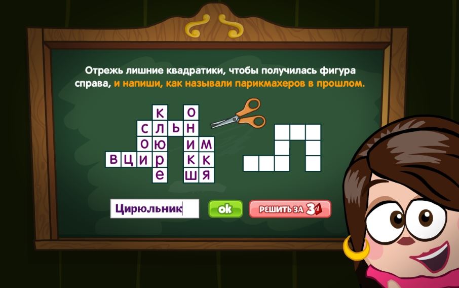 Отрежь лишние квадратики, чтобы получилась фигура справа, и напиши, как называли парикмахеров в прошлом.